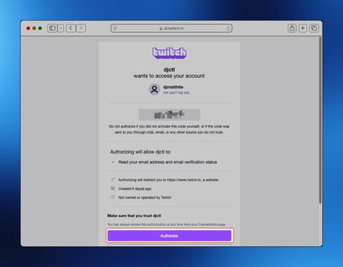 Please visit: https://www.twitch.tv/activate?device-code=<REDACTED>