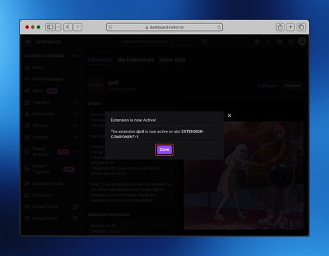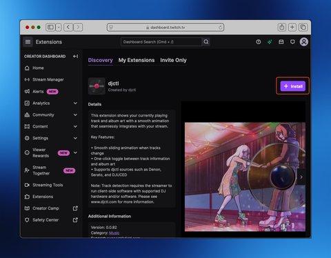 Next, insall the djctl Twitch extension. The extension can be installed via the following URL: